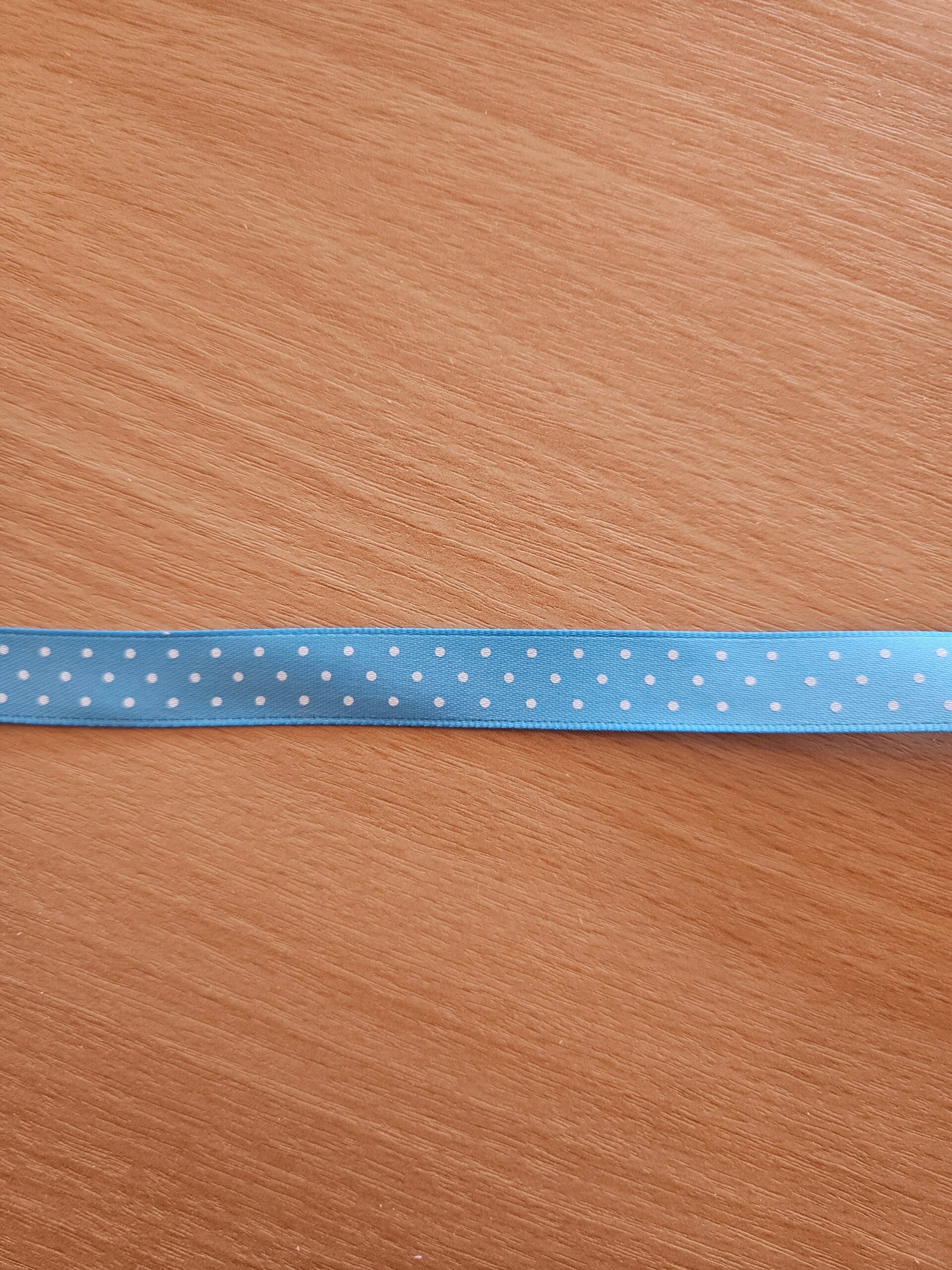 Satijnband lichtblauw met witte stippen 13mm