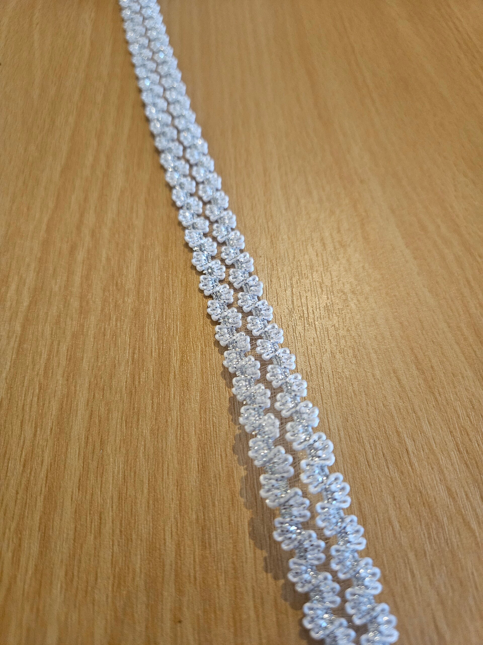 Elastisch band wit met zilver ca.15mm
