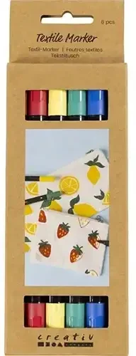 Textielstiften 6 stuks standaard kleuren